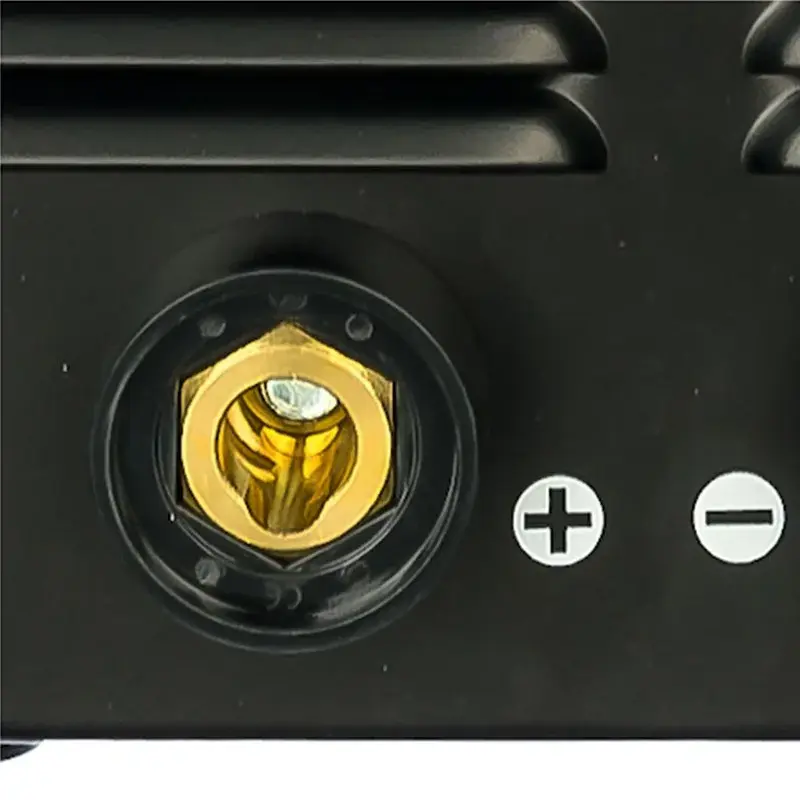 Подключение кабелей. Специальные силовые разъемы сварочного инвертора BRIMA ARC-250 380В служит для быстрого подключения сварочного кабеля, а также исключают потери тока и нагрев в местах контакта.