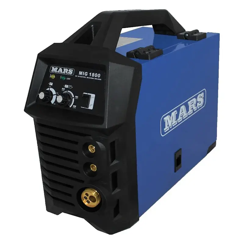 Сварочный полуавтомат BRIMA MIG-1800 – промышленный инверторный аппарат для варки MIG-MAG в среде защитных газов. Ток плавно настраивается вручную при помощи регулятора до максимального значения в 180 А.