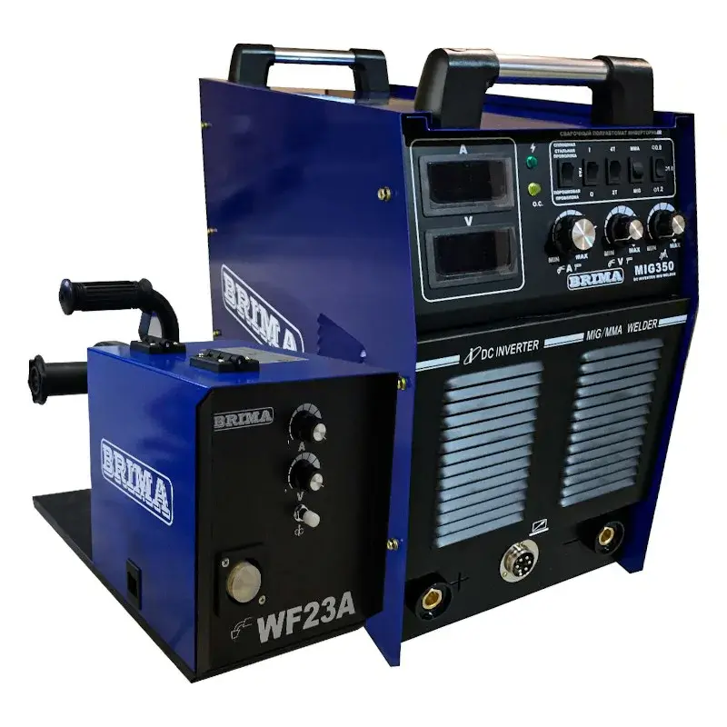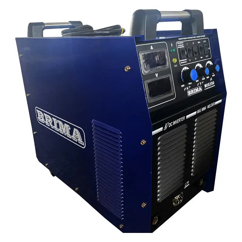 Инверторный сварочный полуавтомат BRIMA MIG-350 – промышленный аппарат для работы в режимах MIG и MAG с ручной регулировкой сварочного тока от 50 до 350 А. Поставляется в комплекте с горелкой.