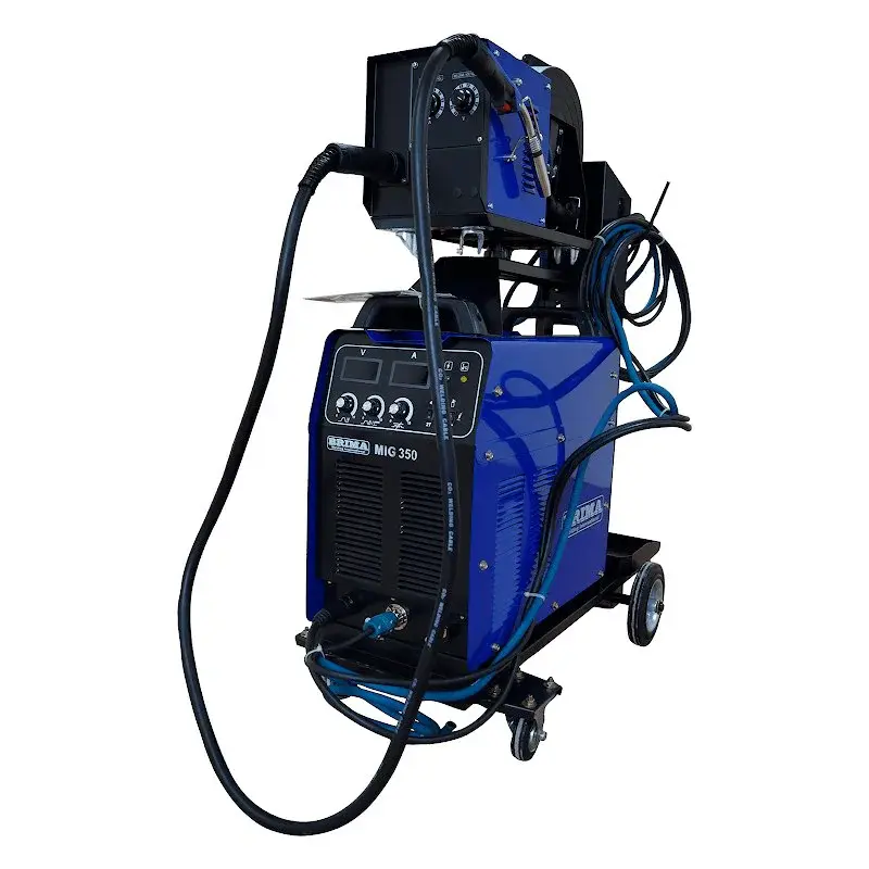 Инверторный сварочный полуавтомат BRIMA MIG-350 – промышленный аппарат для работы в режимах MIG и MAG с ручной регулировкой сварочного тока от 50 до 350 А. Поставляется в комплекте с горелкой. Для простого перемещения агрегата он оснащен транспортировочной тележкой.