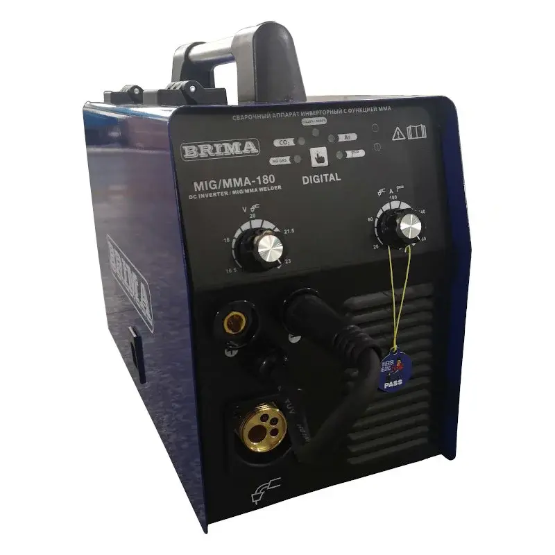 Сварочный полуавтомат BRIMA MIG/ММА-180 DIGITAL – инверторный аппарат для работы в режимах MIG, MAG и ММА. Максимальный сварочный ток составляет 180 А. Для использования модели подойдет проволока диаметром 0,8 - 1 мм или электрод от 1,6 до 4 мм.
