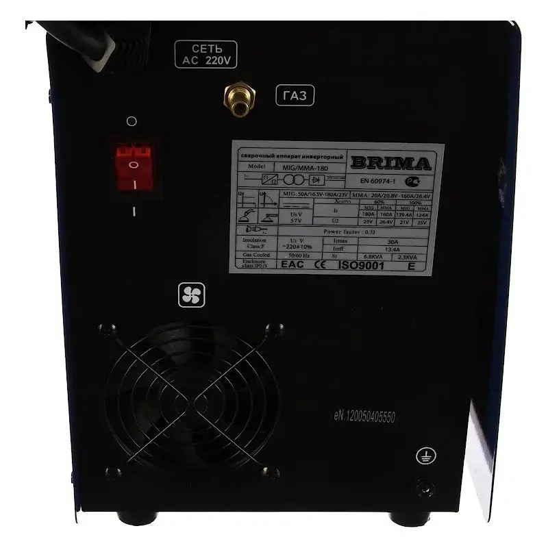 Текущее состояние инверторного сварочного аппарата BRIMA MIG/ММА-180 DIGITAL легко определить по индикаторам, расположенных на лицевой панели. Лампочки позволяют узнавать об активации системы защиты или подключении аппарата к питанию.