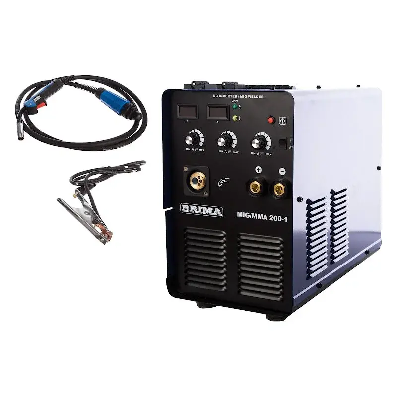 Сварочный полуавтомат BRIMA MIG/MMA-200-1 – промышленный аппарат для работы в режимах MMA и MIG. Максимальный сварочный ток составляет 250 А. Для использования модели подойдет проволока диаметром 0,8 - 1,2 мм или электрод от 1,6 до 6 мм.