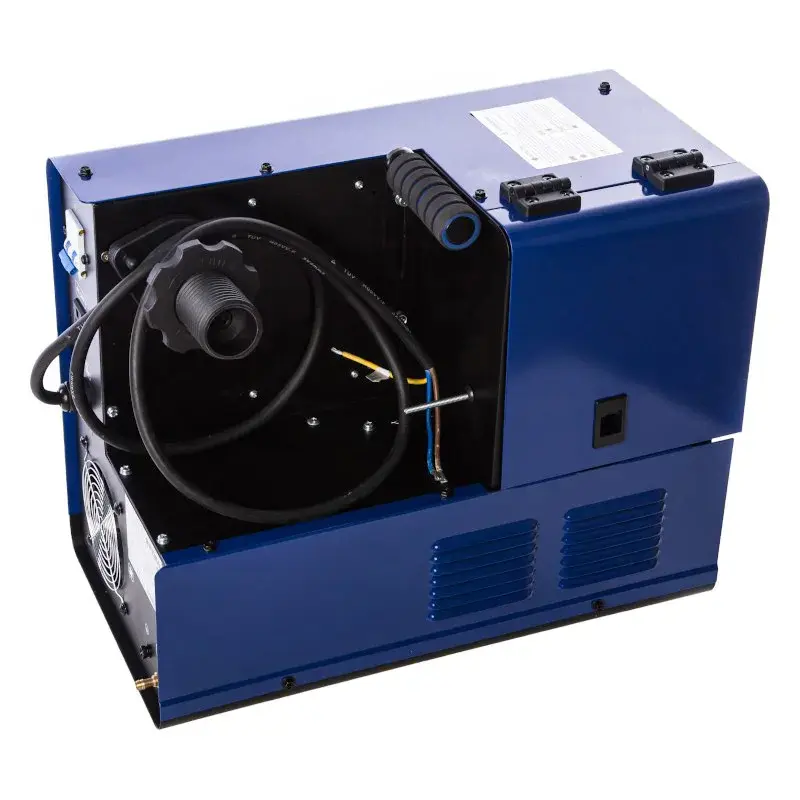 Рядом с дисплеями находятся светодиодные индикаторы. Лампочки с соответствующими обозначениями загораются при подключении сварочного аппарата к электросети или в случае перегрева. При перегрузке сработает система защиты, которая остановит работу модели. Автоматический запуск инверторного сварочного аппарата произойдет после того, как температура опустится до допустимого уровня.