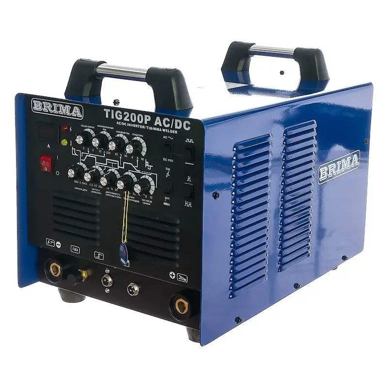 Сварочный аппарат BRIMA TIG-200 AC-DC выдает максимальный ток 200 А и используется для работы с вольфрамовым электродом в режиме TIG. Модель позволяет гибко настраивать параметры: от времени продувки газа до переключения тока с постоянного на переменный.
