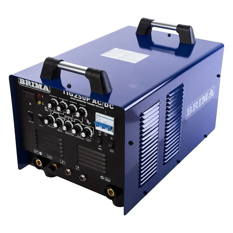 TIG инвертор Brima TIG-250P AC/DC 380В HF 0005683 обеспечивает точную регулировку тока, а так же его стабильность. Установка работает как с переменным, так и с постоянным током. Аппарат предназначен для сварочных работ ММА и TIG методами. Прибор оснащен дополнительными защитами для работы с нестабильным электричеством. Предусмотренные силовые разъемы служат для быстрого подключения сварочных кабелей, а также исключают потери тока и нагрев в местах контакта. Удобные рукоятки позволяют для переноса в удобное для работы место.