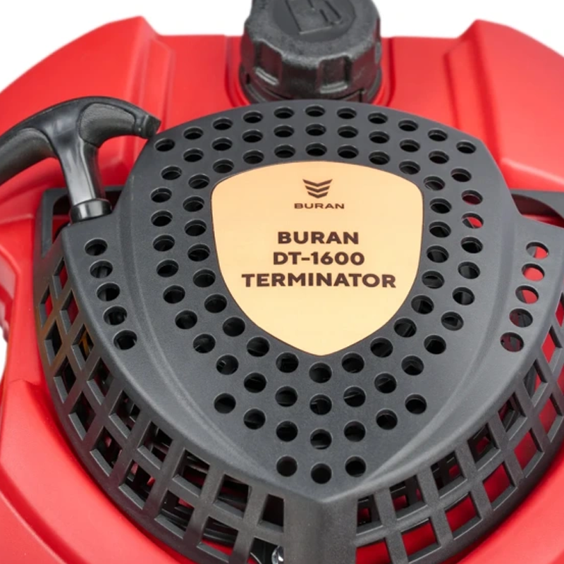 Мотобур модели DT—1600 Terminator от производителя профессиональной бензотехники BURAN обладает четырёхтактным двигателем Zongshen. Двигатели Zongshen являются одними из лучших двигателей производимых в Китае. Увеличенный срок службы, лёгкий пуск, экономный расход топлива. Широкие рамные ручки предназначены для удобной работы двух операторов и обеспечивают увеличенный момент силы. Важным преимуществом является мощность бура 7.5 л.с. (5500 Вт) при объёме двигателя 225 см3, это позволяет эффективно использовать шнек диаметром 300мм.