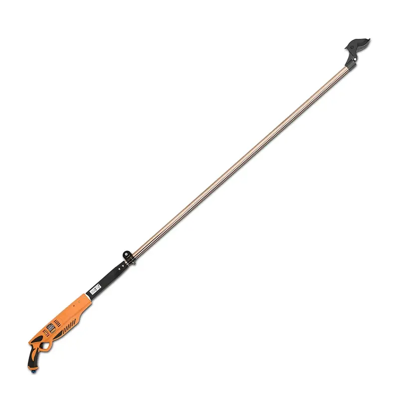Аккумуляторный секатор на длинной штанге CAIMAN CN-937 позволяет вести обрезку сучьев и ветвей диаметром до 40 мм, находящихся на высоте от земли или в глубине кроны дерева, куда сложно дотянуться при помощи обычного инструмента. Штанга длиной 2,0 метра позволяет решать такую задачу наиболее удобным и безопасным способом – находясь на значительном расстоянии от ветки: например, стоя на земле, не прибегая к помощи стремянки, лестницы и не влезая на дерево. Наличие электромотора и малый вес инструмента (всего 2,44 кг) ускоряет и облегчает работу, так как не требует каких-либо значительных физических усилий для обрезки веток.
