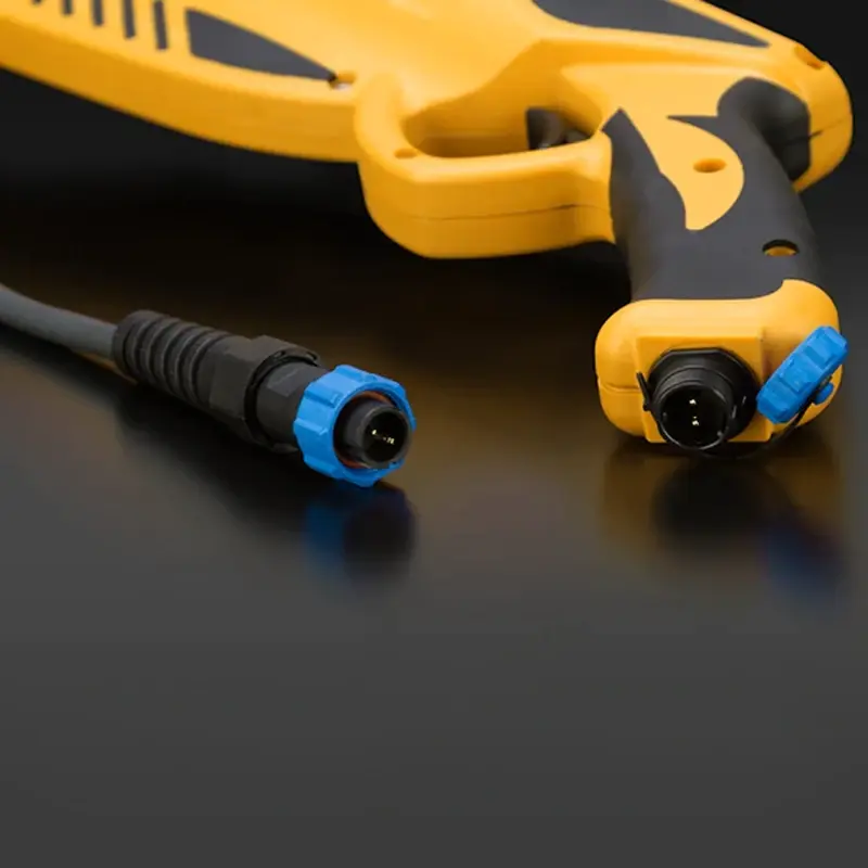 - Быстросъемное проводное соединение инструмента с аккумуляторной батареей