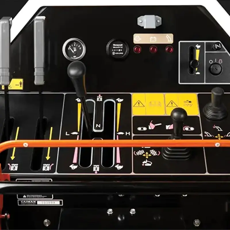 Управление наклона шнека вправо или влево осуществляется при помощи джойстика. Таким образом можно подстроиться под любой рельеф и условия работы, например, если поверхность очень неровная или если машина наклоняется при работе из-за разницы в глубине снега.