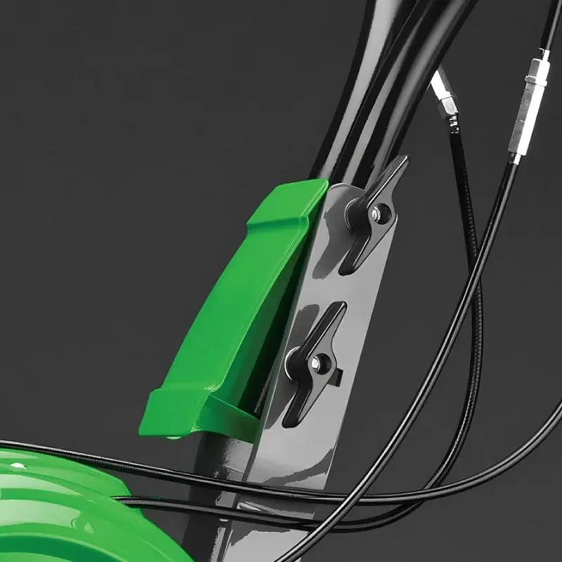 Регулируемая рукоятка Удобная эргономичная рукоятка культиватора легко регулируется под рост оператора. Имеется два положения регулировки.