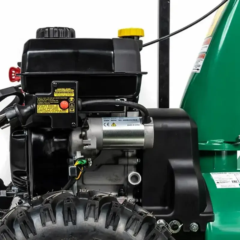 В снегоуборщике установлен 4-тактный мотор премиум-класса мощностью 5,1 кВт. Двигатель соответствует европейским экологическим стандартам. За счет электростартера он быстро запускается на морозе. Достаточно подключить стартер к электросети и нажать на кнопку включения.