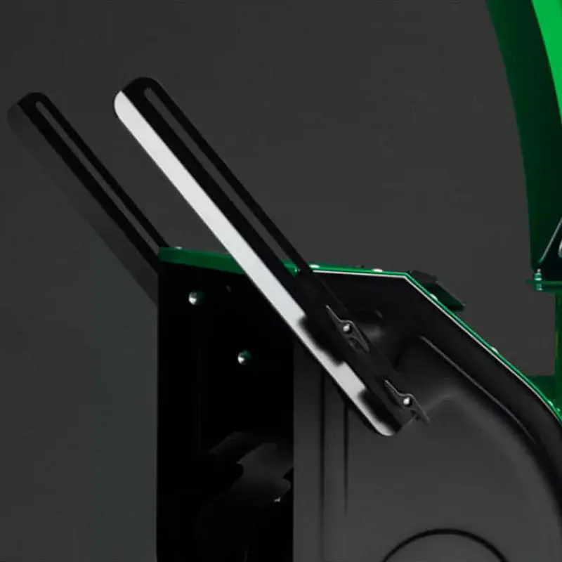 На ковше расположены реверсивные башмаки. Их положение настраивается вручную, чтобы задавать расстояние между кожухом шнека и очищаемой поверхностью. Это позволит настроить снегоуборщик как на глубокое снятие снега, так и предотвратить случайное касание ковша с дорожкой под сугробами.