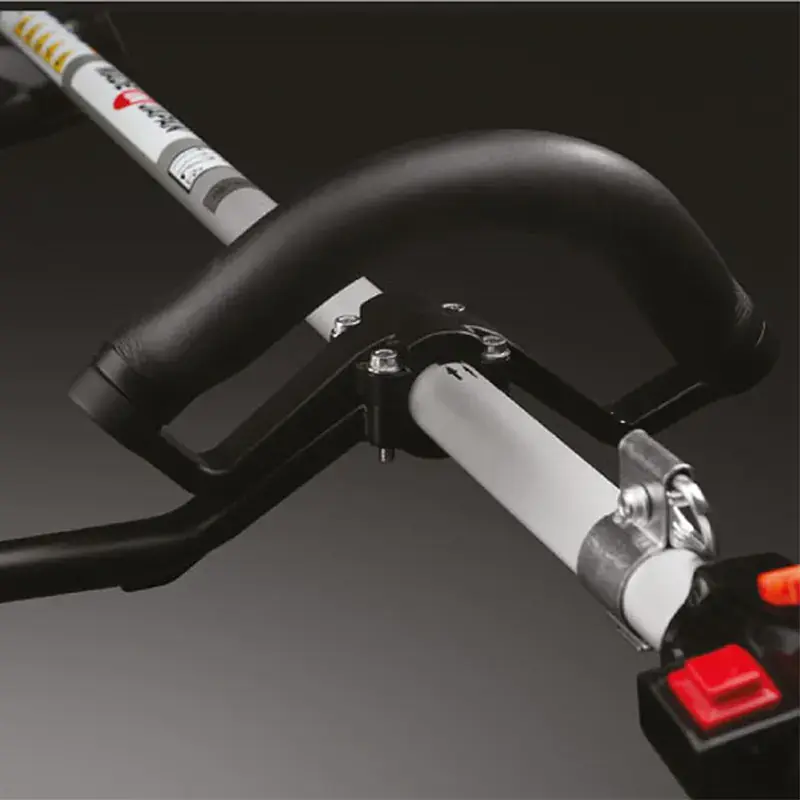 Держатель с телескопическим механизмом регулируется по длине. Это и наплечный ремень позволяю эксплуатировать аппарат комфортно даже длительное время. В комплекте присутствуют защитные очки и универсальный кожух, которые обеспечивают безопасный скос и подравнивание даже жесткой травы.