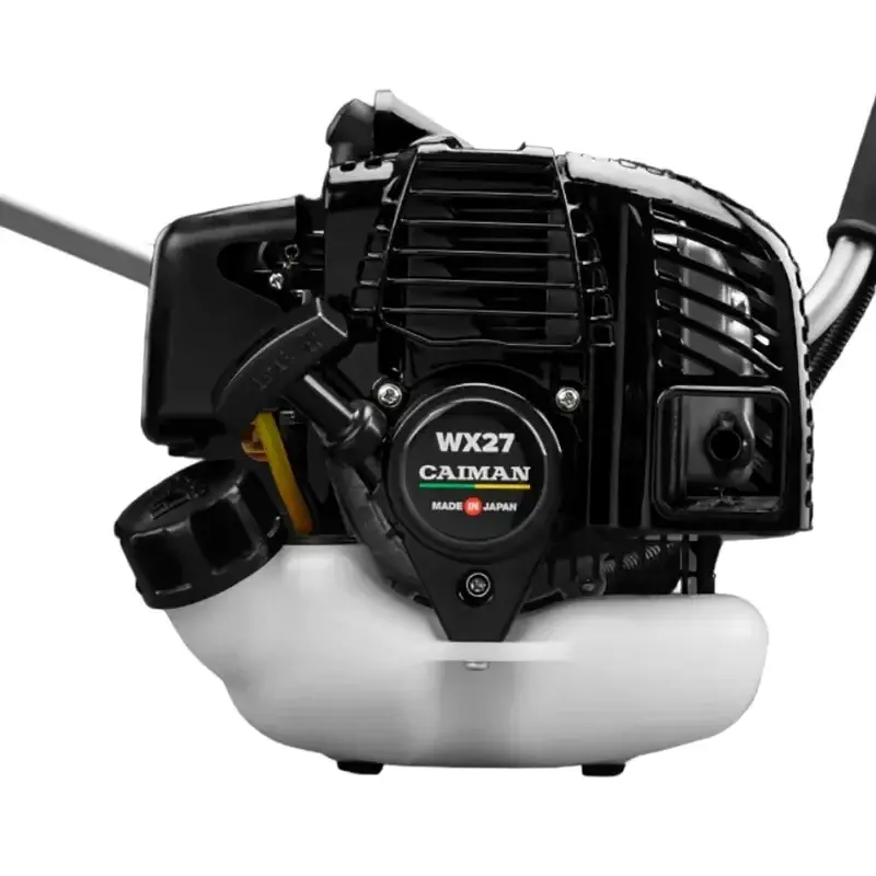 Бензиновый триммер Caiman WX27 относится к инструментам профессионального класса, рассчитанным на интенсивные ежедневные нагрузки. На бензокосу можно установить триммерную насадку с леской диаметром 2,4 мм или пильный диск с шириной обработки 230 мм для скашивания древесной поросли. Цельная прямая штанга с кованым валом обеспечивает прочность конструкции. Двухтактный мощный двигатель объемом 24,5 см3 оснащен системой легкого запуска. Блок круиз-контроля с функцией памяти позволяет устанавливать и поддерживать необходимое количество оборотов.
