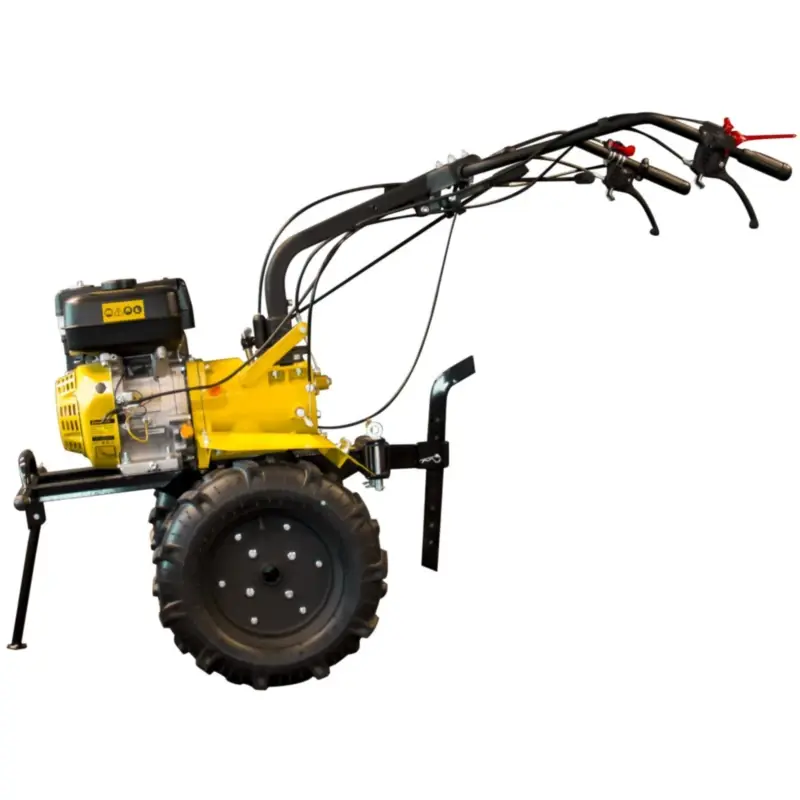 Мотоблок Champion ВС 1193 оборудован многодисковым сцеплением с коробкой передач обеспечивающей 2 скорости вперёд либо 1 назад. Все управление вынесено на рукоятки управления. Усиленный шестеренчатый редуктор обеспечивает высокий КПД передачи крутящего момента на фрезы или пневмоколеса. Пневмоколеса входящие в комплект поставки имеют большой диаметр и ширину (5/12 дюймов). Благодаря таким большим колесам, мотоблок обеспечивает высокую устойчивость и скорость передвижения при подсоединении транспортировочной телеги.