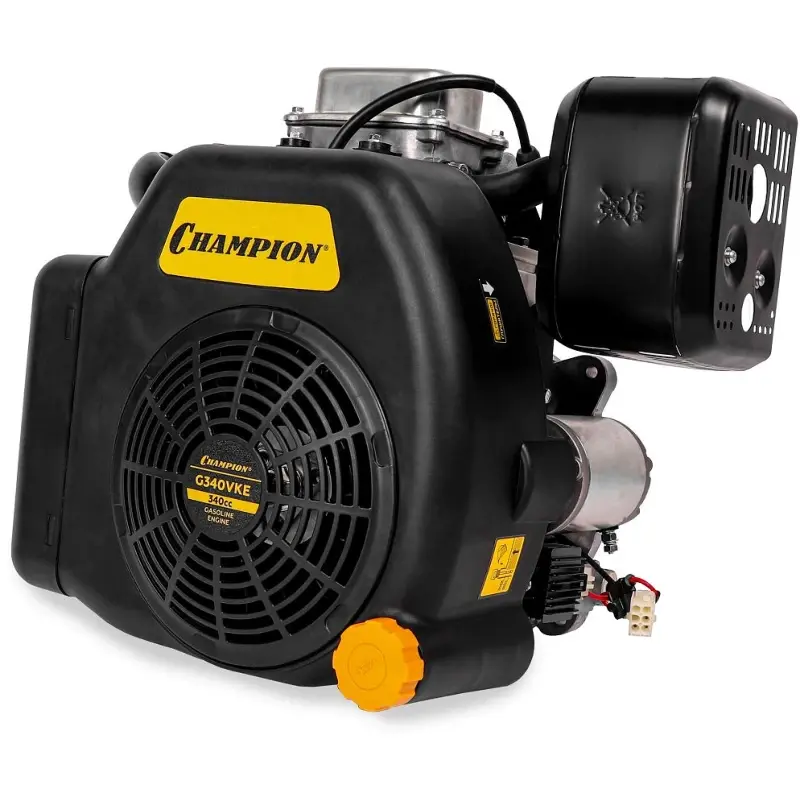 Двигатель Champion G340VKE - наделен рядом выдающихся качеств. Воздушное охлаждение этой модели с помощью вентилятора позволит долго сохранит агрегат от выхода из строя в результате перегрузки. Вертикальный вал также является полезной особенностью строения. Двигатель наделяет технику мощностью 11 л.с., что является высоким показателем для садового класса. В сочетании с объемом в 340 куб.см. такой мощностью можно достичь высочайшей производительности и эффективности. Использование этого механизма дает экономию времени без потери качества работы.