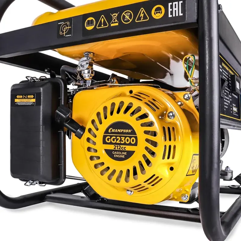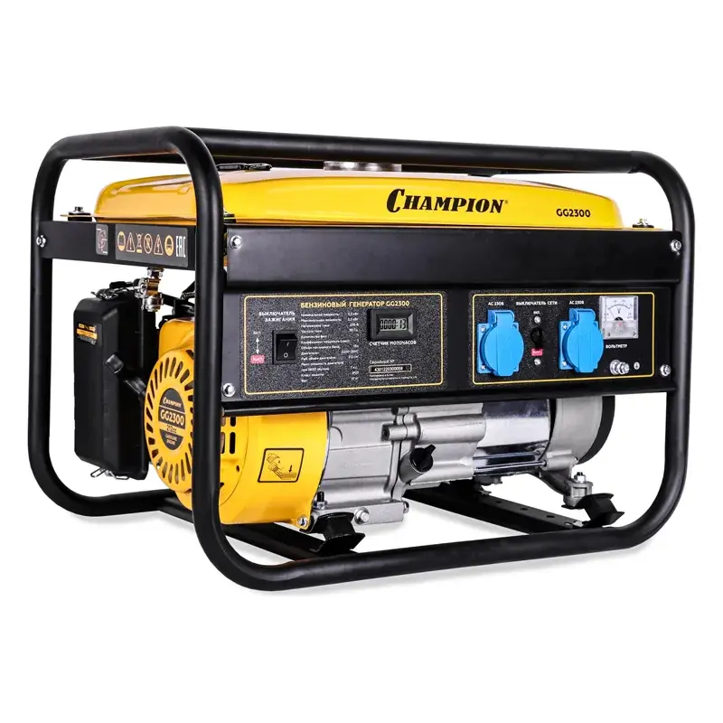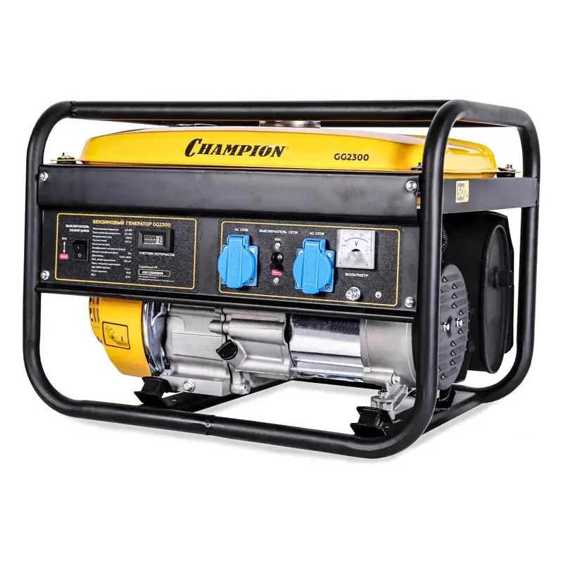 Генератор бензиновый Champion GG2300 - высокопроизводительное мощное устройство. С его помощью можно быстро запитать самую разную технику на даче, в загородном доме, на строительной площадке. Отличный вариант для автономного либо аварийного электропитания. Рекомендован для обеспечения энергией маломощных электроинструментов и бытовых электроприборов. Предусмотрена защита от перегрузок. Для этих целей предназначен вольтметр.