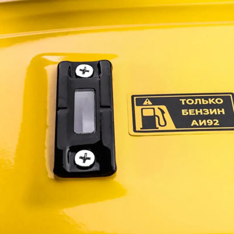 Генератор установлен на трубчатой раме, которая оснащена резиновыми амортизирующими элементами. Эти элементы очень качественно гасят вибрации. Конструкция агрегата продумана до мелочей. Изделие отличается повышенной надежностью. Установленный глушитель отделяют защитные панели. Они значительно увеличивают безопасность использования. На передней части корпуса присутствует наклейка с символами управления, предостережениями и иной важной информацией. Если вас интересует мощный и долговечный генератор, то непременно обратите внимание на эту модель.