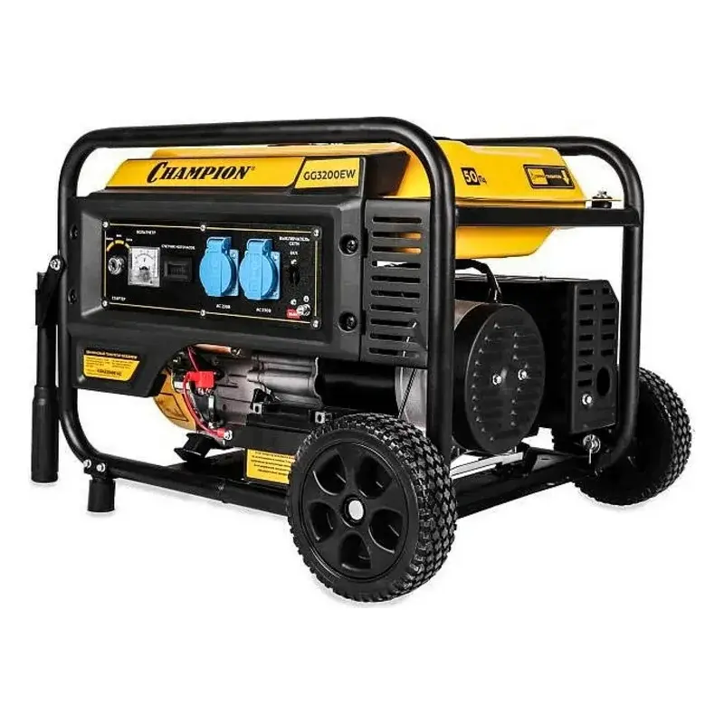 Бензиновый генератор Champion GG3200EW - новинка 2022 года, оснащен 4-тактным двигателем с воздушным охлаждением. Генератор характеризуется средней мощностью до (3,5 кВт), достаточной, чтобы наладить автономное электроснабжение на дачном участке, в доме или небольшом цеху. Оневысоким расходом топлива - до 1,5 л/час, а объемный топливный бак позволяет эксплуатировать оборудование длительное время без дозаправки. Уровень топлива легко контролировать, благодаря установленному на баке датчику. Эмалевое покрытие бензобака обеспечивает повышенную долговечность этого узла.