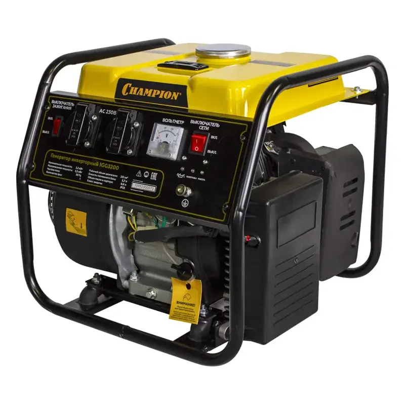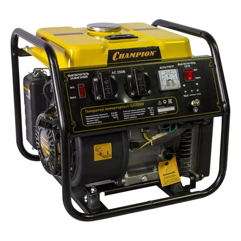 Бензиновый генератор CHAMPION IGG3200 предназначен для резервного энергоснабжения бытовой, компьютерной и оргтехники, котельного оборудования, осветительных приборов и электроинструмента с максимальной суммарной мощностью 3,5 кВт. Передвижная электростанция пригодится в загородном доме, мастерской, гараже, во время отдыха на природе и выездных ремонтно-строительных работ. Генератор имеет две розетки 230 В/16 А с крышками для защиты от влаги и пыли.