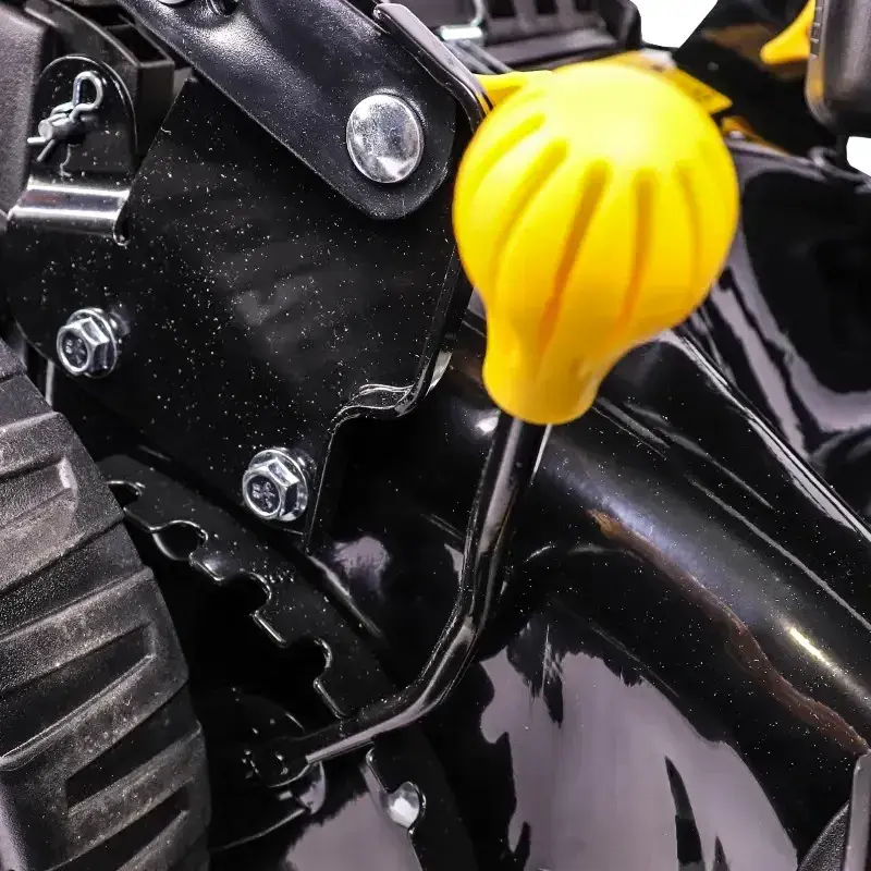 Двигатель быстро заводится благодаря системе легкого старта и запускает вращение ножа. Специальный держатель для шнура стартера, расположенный на рукоятке, избавляет от необходимости наклоняться каждый раз вперед при запуске косилки. Машина оснащена приводом на задние колеса. Для начала и остановки движения достаточно просто прижать или отпустить соответствующий рычаг.