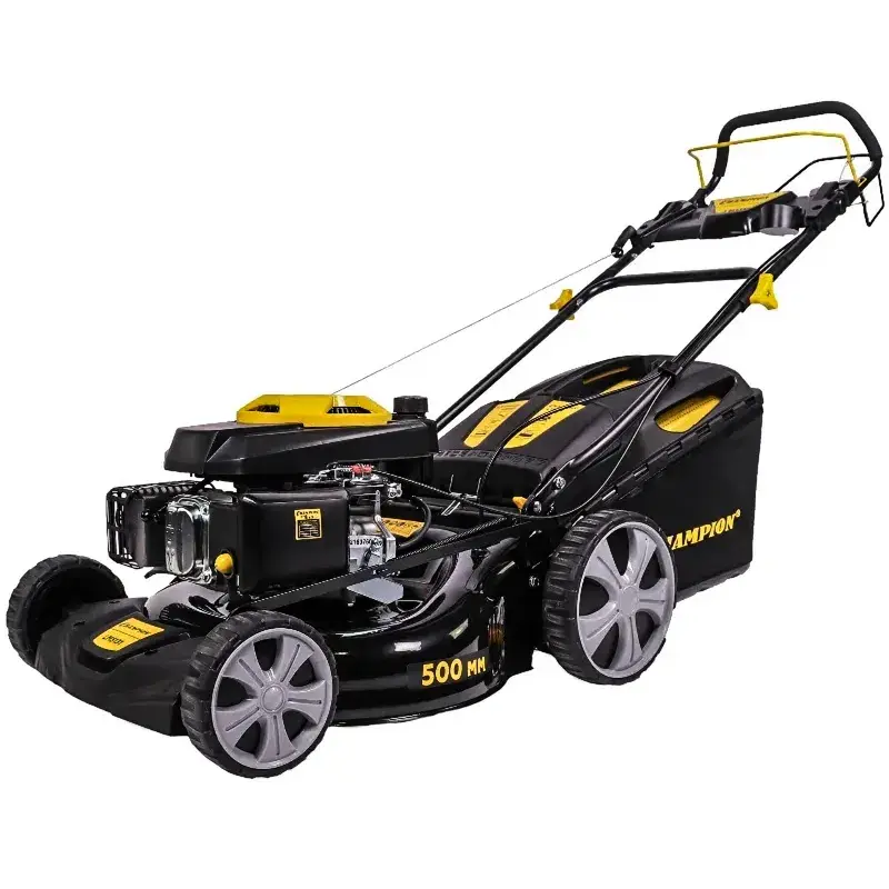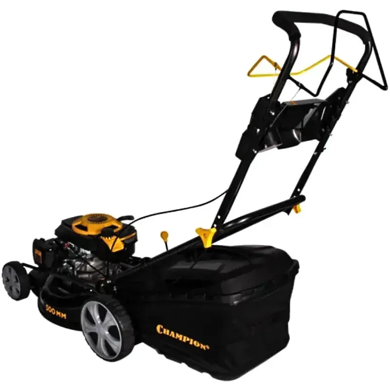 Бензиновая газонокосилка CHAMPION LM5131 — самоходная модель, поддерживающая четыре режима кошения. Машина оборудована четырехтактным двигателем мощностью 4,1 л.с., который заводится при помощи ручного стартера. Высоту среза можно легко регулировать в диапазоне от 25 до 55 мм одним рычагом, в зависимости от типа газона и сорта травы. Благодаря большой ширине 50 см и остро заточенному ножу косилка позволяет чисто обрабатывать обширные участки, не допуская пропусков.