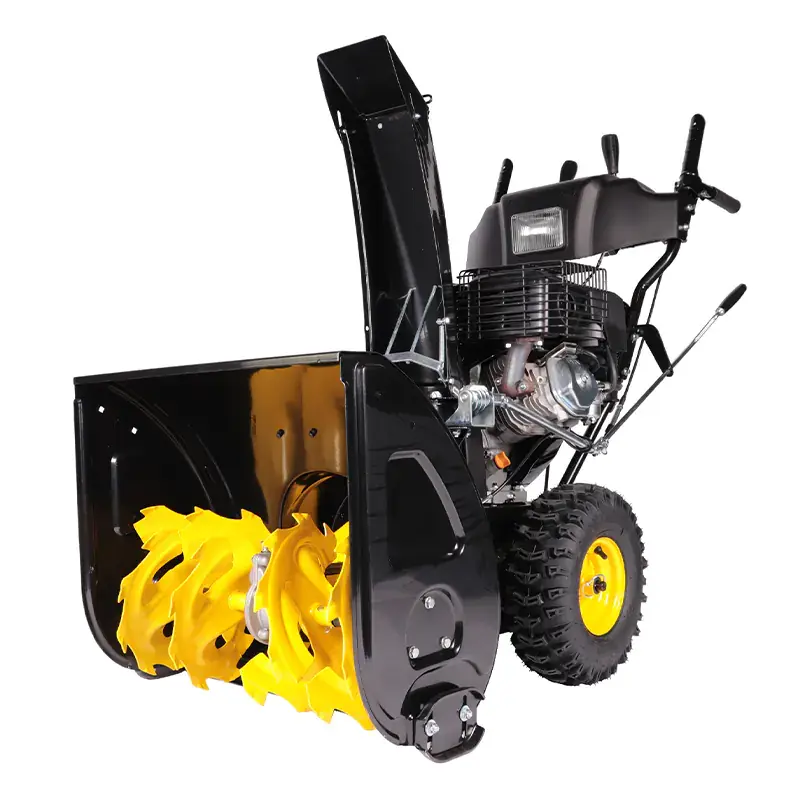 Широкие колеса с глубоким протектором обеспечивают высокую проходимость, не пробуксовывают на льду. Для настройки высоты забора снега на ковше предусмотрены полозки. 8-ступенчатая коробка передач позволяет подобрать оптимальный режим для уборки сугробов разной высоты и плотности. С ярким фонарем рабочая область всегда хорошо освещена.