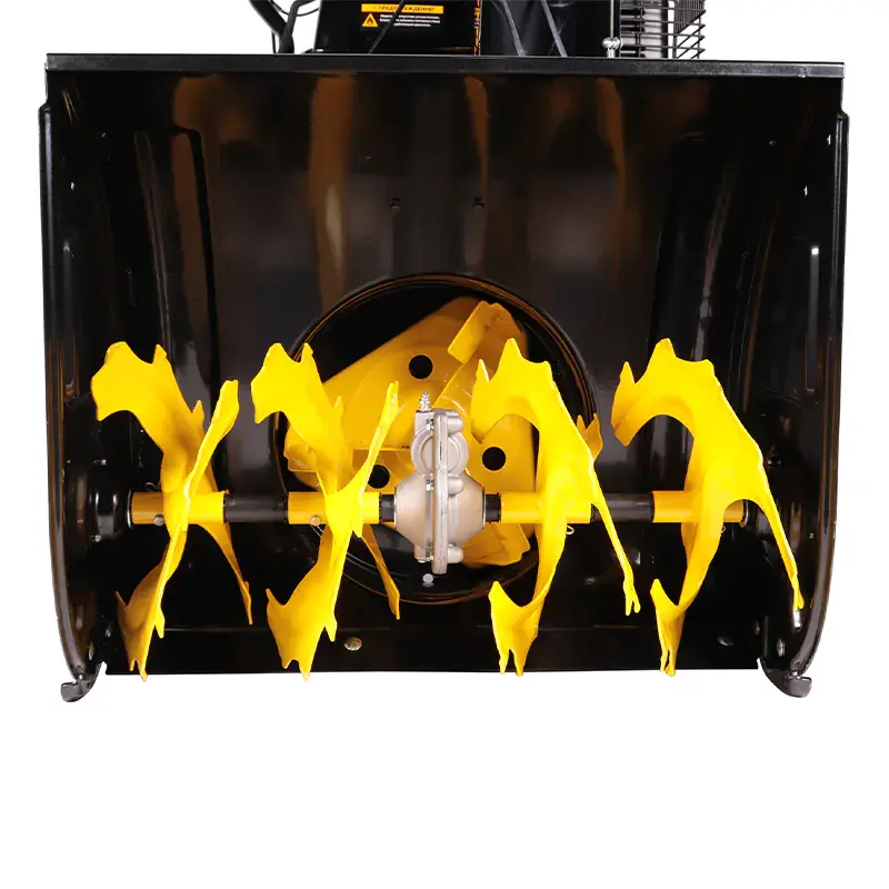 Двухступенчатая система выброса повышает качество уборки. При этом снег сначала измельчается металлическим шнеком и подается под кожух, а затем крыльчаткой отбрасывается через желоб. Для защиты редуктора снегоуборщика CHAMPION ST861 от поломки предусмотрены специальные болты, которые срезаются при заклинивании шнека, столкновении с твердыми предметами или ледяным затором.
