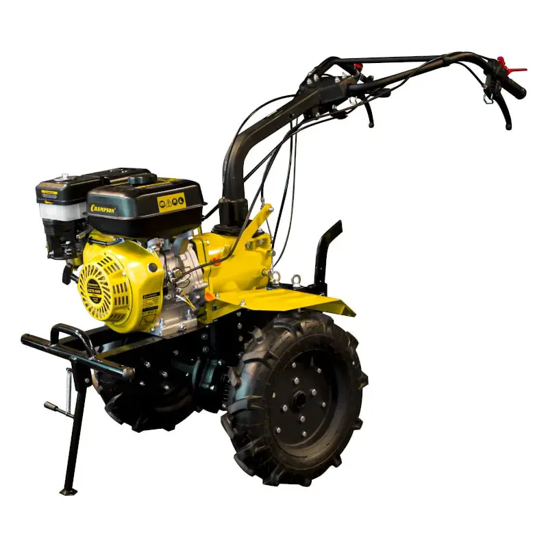 Благодаря большим колесам с рельефными протекторами мотоблок CHAMPION ВC1193 легко передвигается по бездорожью. Широкие металлические крылья служат для защиты от вращающихся частей мотоблока и летящих во время работы комьев земли. Стояночная опора обеспечивает устойчивость машины и упрощает ее техническое обслуживание. Специальный датчик помогает избежать запуска двигателя при недостаточном уровне моторного масла в картере.