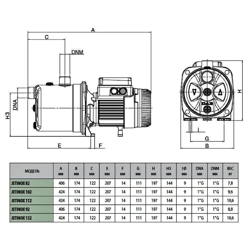 Насос центробежный DAB JETINOX 82 T имеет значительную всасывающую способность даже в том случае, когда вода наполнена пузырьками или небольшим количеством взвешенного песка.