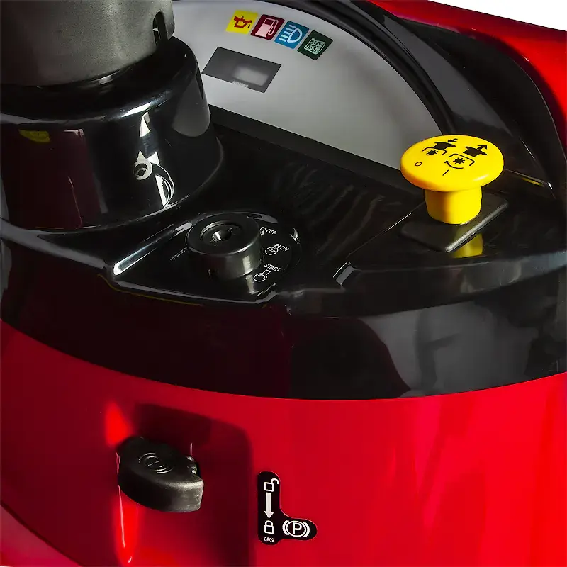 Колеса садового минитрактора DDE 106-300 с большими пневматическими шинами обеспечивают хорошее сцепление с поверхностью и плавный ход даже по неровному участку, при этом не повреждают растения. Райдер оснащен комфортным креслом и рулем с мягкой накладкой, за который удобно держаться даже при продолжительной работе. В передней части находятся фары. Подсветка позволяет косить траву рано утром или вечером, когда на улице темно.