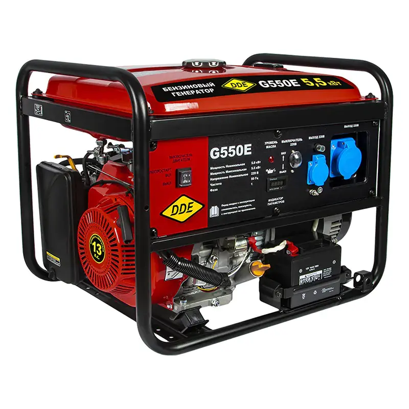 Бензиновый генератор DDE G550E используется в качестве альтернативного источника электроэнергии в загородных домах, на стройке, объектах торговли и т.п. Устройство позволяет подключить несколько потребителей общей мощностью до 5 кВт, имеет большой топливный бак, рассчитанный на 9,5 часов работы.