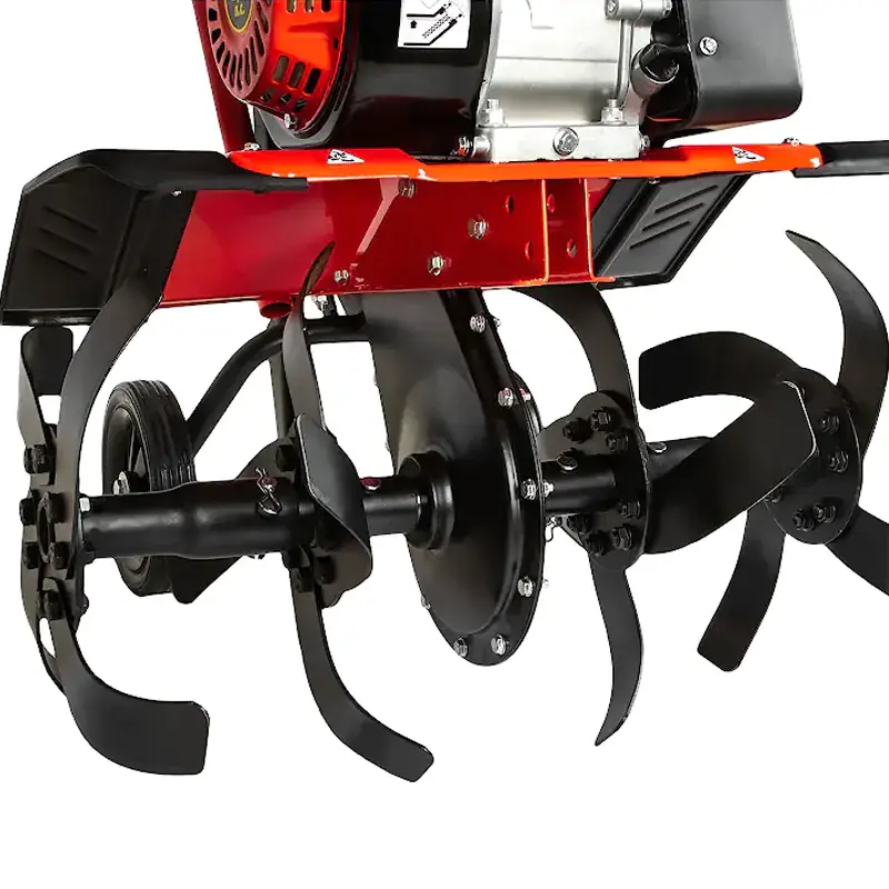 В комплектацию входят саблевидные остро заточенные фрезы, изготовленные из прочной стали. Вы можете увеличить ширину обработки до 85 см, добавляя новые пары фрез.