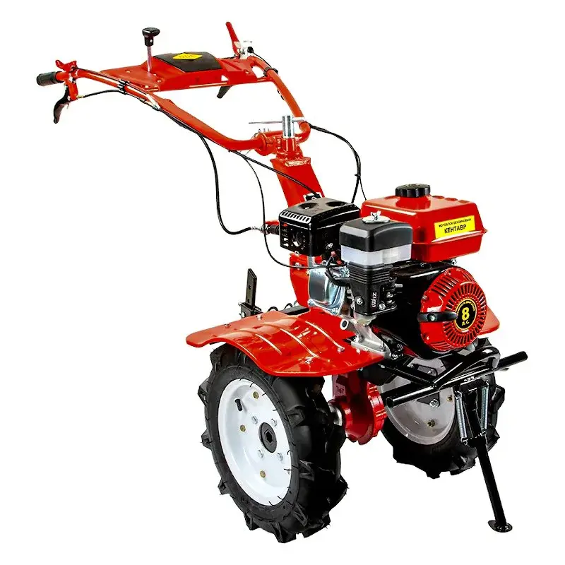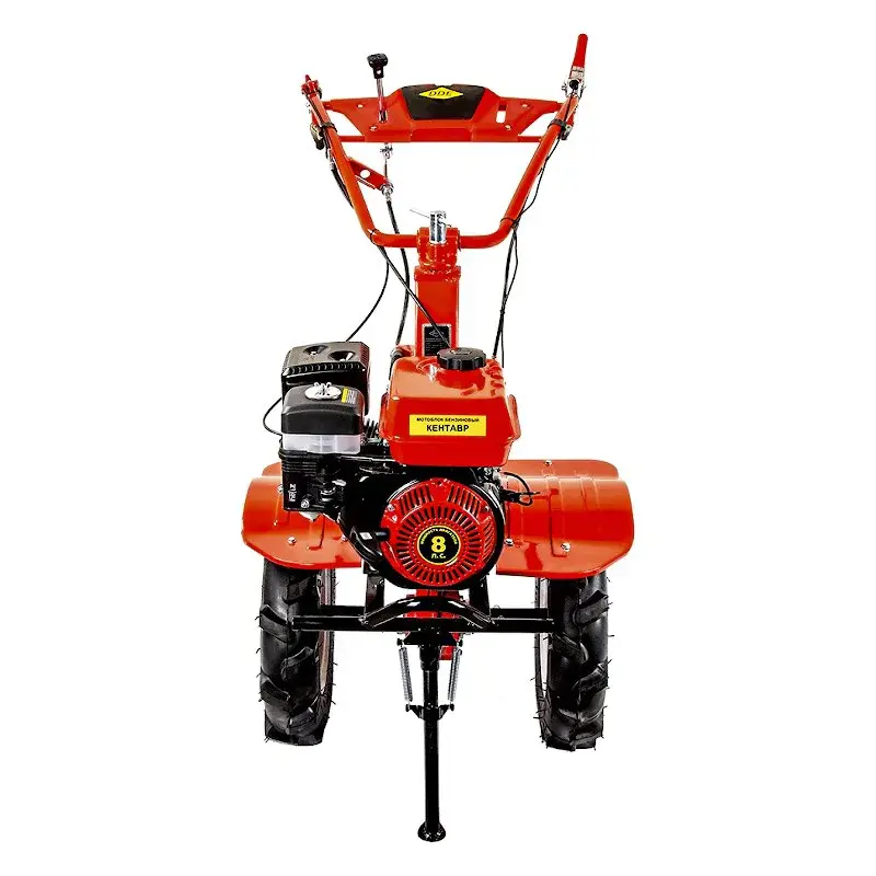 Бензиновый мотоблок DDE Кентавр имеет широкое применение на приусадебных участках. Вал отбора мощности позволяет подсоединять различное активное навесное оборудование, такое как грузовой прицеп, косилка, картофелекопалка, водяная помпа, снегоочиститель, плуг, рыхлитель и прочее. Устройство оснащено четырехтактным двигателем мощностью 8 л.с. с воздушным охлаждением и ручным стартером. Входящие в комплект поставки фрезы обеспечивают вспашку земли на глубину 150–330 мм. Ширина обработки от 900 до 1100 мм.