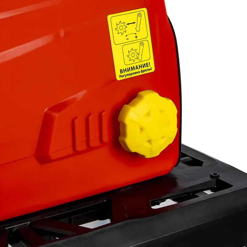 Измельчитель оснащен надежным двигателем, который позволяет фрезе развивать скорость до 5000 об/мин. В дополнение к этому аппарат оснащен объемным мешком для сбора переработанных отходов. Последний крепится к корпусу с помощью надежного механизма с блокиратором. Какой бы неровной ни была почва на вашем участке, мешок удержится на положенном ему месте.