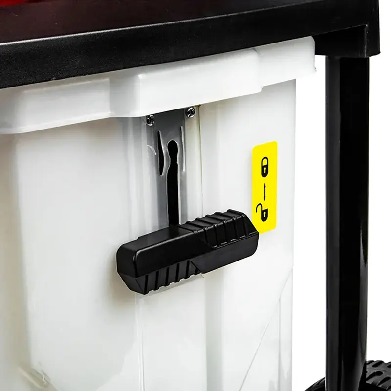 Удобству передвижения по любой поверхности служат также большие колеса и прочная рама из металлических труб. Жесткость конструкции повышает удобство перемещения.