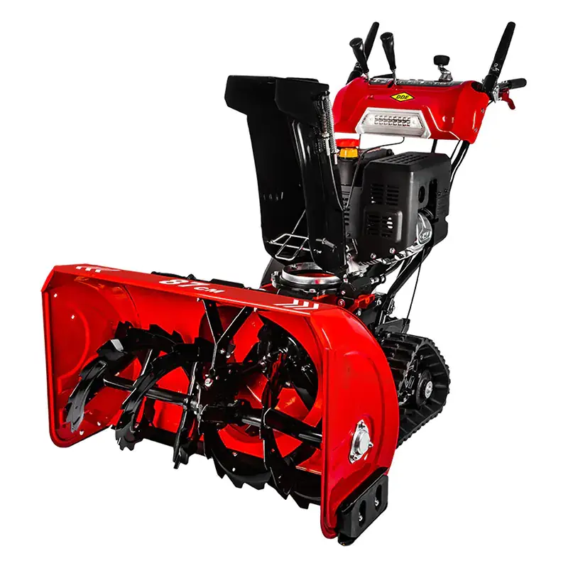 Бензиновый снегоуборщик DDE с шириной ковша 87 см подходит для уборки снега на территориях площадью до 800 м2. Гусеницы треугольной формы обеспечивают хорошую проходимость по льду и неровным поверхностям. За счет этого снегоуборщик будет полезен для уборки территорий ферм, загородных участков, общественных скверов, парковок и т.п.