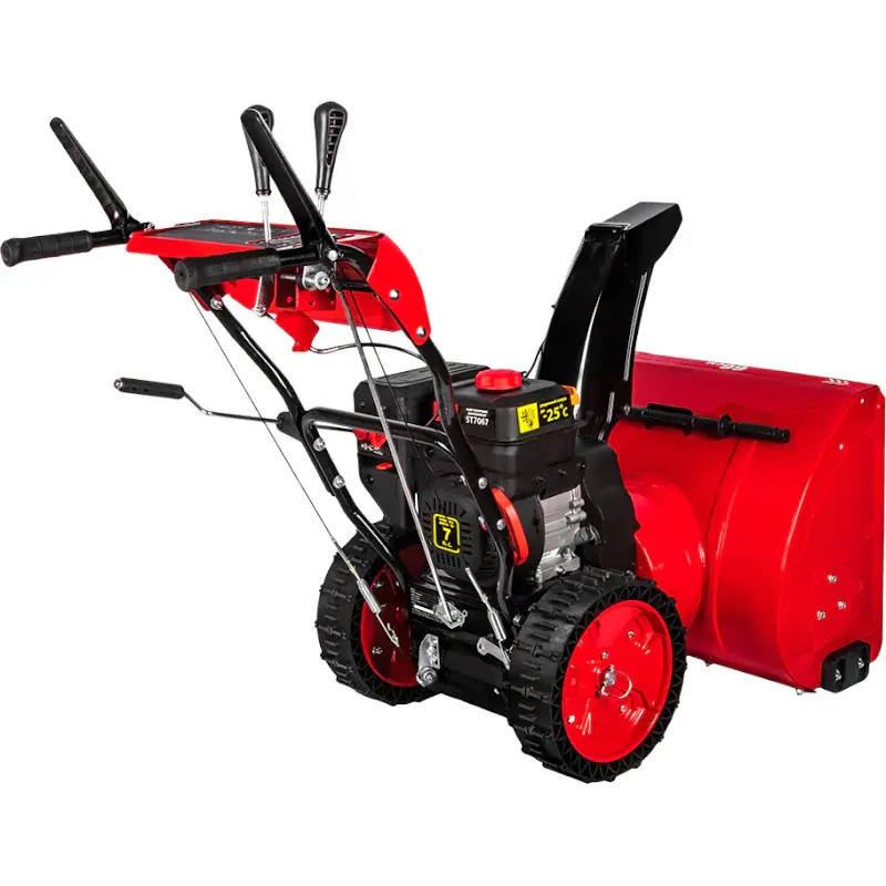Бензиновый снегоуборщик оснащен четырехтактный OHV-двигатель Loncin G210FS объемом 212 см3. Праймер для предварительной подкачки топлива в карбюратор облегчает запуск мотора с помощью ручного стартера. За счет большой ширины обработки увеличивается скорость уборки участка. Все рычаги управления расположены под рукой. Дальность и направление выброса снега регулируются с панели оператора.
