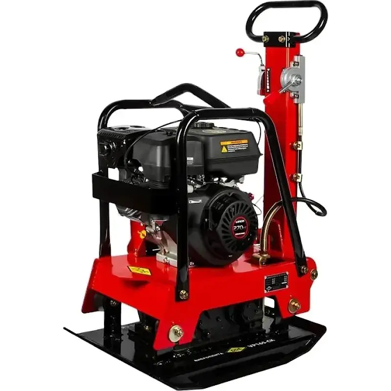 Бензиновая виброплита за один час позволит обработать участок площадью 400 м2. Аппарат уплотнит песок, щебень, а также грунт. Высокопрочная закругленная стальная подошва длиной 710 мм и шириной 450 мм устойчива к износу, подходит для трамбовки в узких местах, например, в траншеях или на небольших дорожках. Возвратно-поступательные движения повышают качество работ.