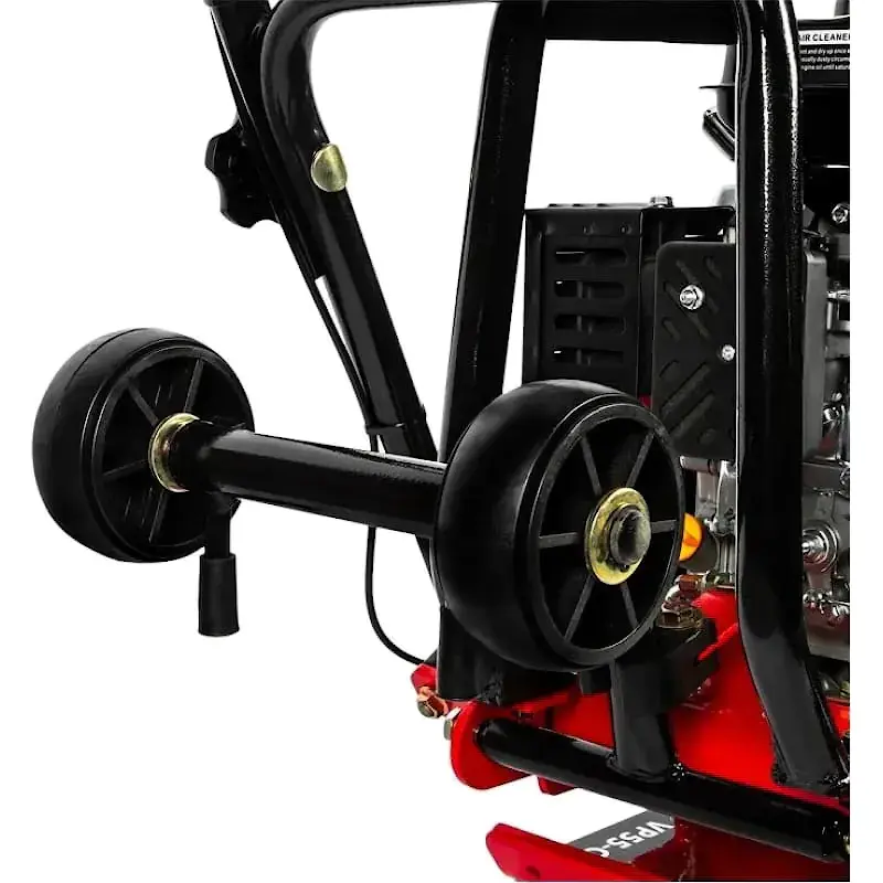 Бензиновая виброплита позволит быстро утрамбовать сыпучий материал: гравий, щебень, песок, а также различные почвенные смеси. Аппарат оснащен плитой основания размером 495 х 320 мм. Это оптимальный размер для обработки участка площадью 250 м2 за один час. За счет компактной конструкции трамбовкой удобно обрабатывать узкие дорожки, траншеи, места вдоль стен, а также участки возле фундаментов. Аппарат поможет отремонтировать определенный участок асфальтового покрытия, благоустроить придомовую территорию, тротуары, садовые дорожки, а также создать фундамент. В конструкции виброплиты предусмотрены откидные колеса. Они позволяют удобно перемещать данную модель до места работы. Вам не придется снимать колеса после транспортировки, т.к. их можно компактно сложить.