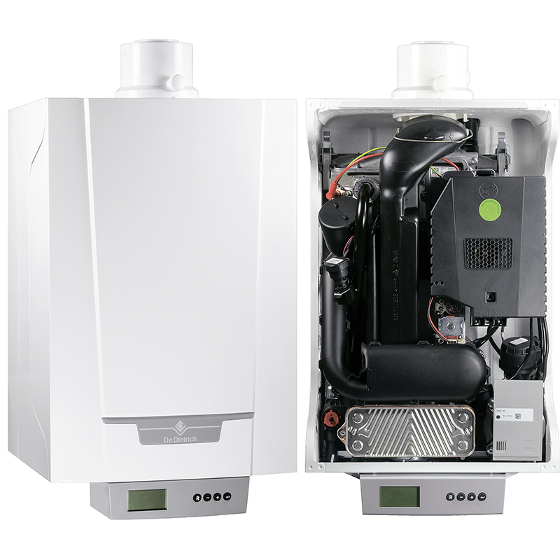Газовый котел De Dietrich S PMC-S 34 мощностью 34 кВт предназначен для отопления помещения площадью до 347 м2. Модель оснащена циркуляционным насосом, жидкокристаллическим экраном и съемной панелью управления.