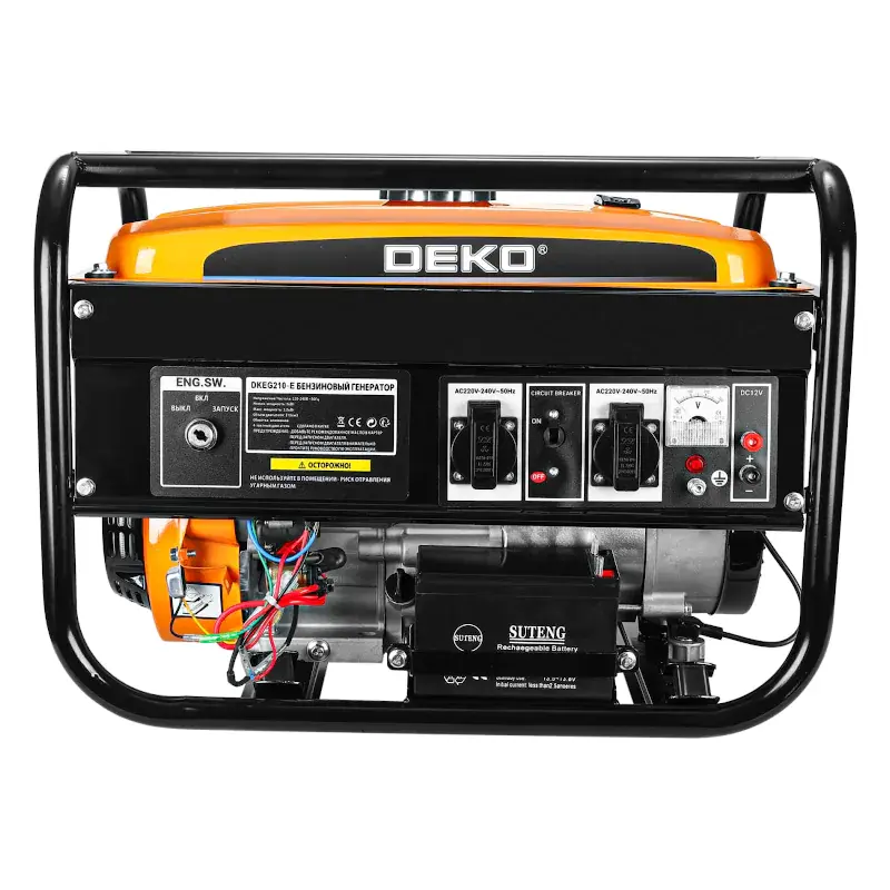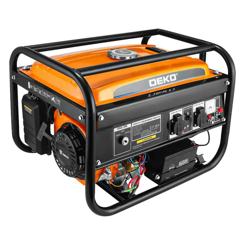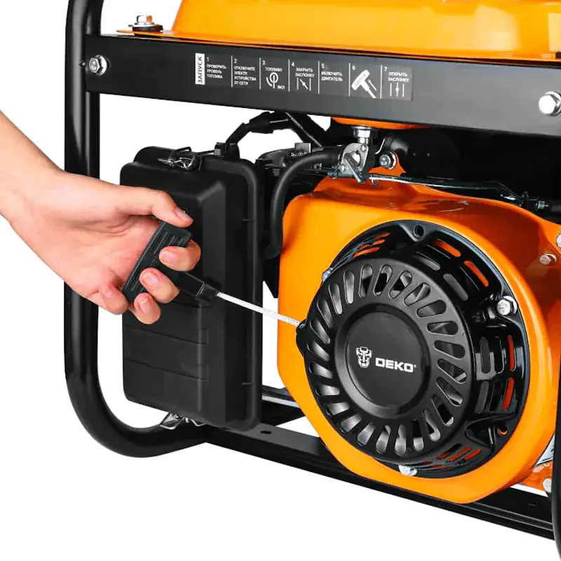 Бензиновый генератор предназначен для выработки однофазного электрического тока напряжением 220 В и частотой 50 Гц. С его помощью можно осуществлять питание электроприборов, электроинструмента, приборов освещения и так далее. Специальный пластиковый колпачок препятствует попаданию влаги и пыли на розетку.