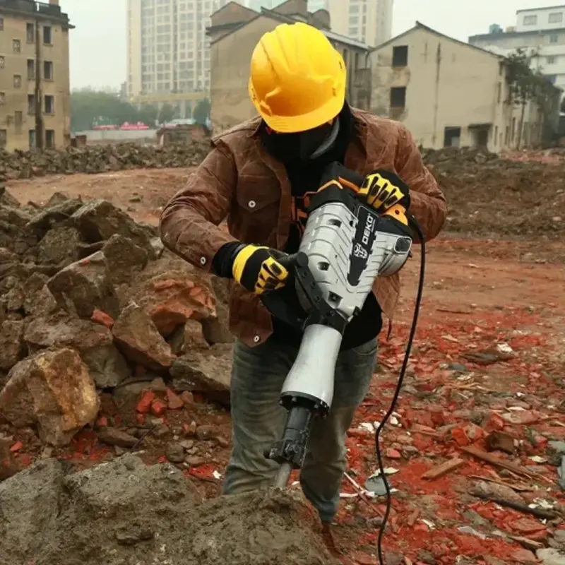 Отбойный молоток DEKO DKJH2050 используется для разрушения бетона и кирпича, удаления старых покрытий.Дополнительная D-образная рукоятка способствует уверенному удержанию инструмента в руках.
