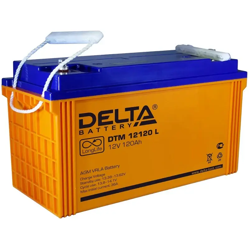 Аккумулятор Delta DTM 12120 L с номинальным напряжением 12 В устанавливают в источники бесперебойного питания (ИБП), используют в резервном энергоснабжении, для медицинского электрооборудования, отопительных систем и водоснабжения, с солнечными панелями и ветрогенераторами. Этот элемент питания может работать в двух режимах: циклическом (разряда-заряда) и буферном (с постоянной подзарядкой). Период эксплуатации увеличен до 12 лет.