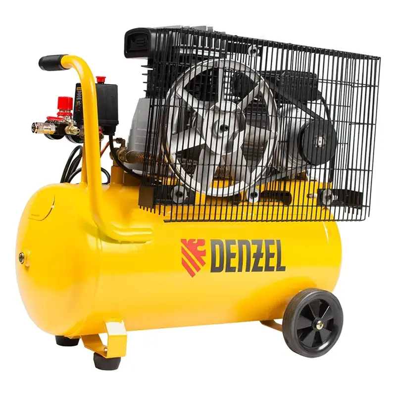 Воздушный компрессор Denzel BCI2300/50 обладает производительностью 400 л/мин и отлично подойдет для питания такого мощного пневматического инструмента, как шлифмашина, гайковерт и т.д. Несмотря на вместительный ресивер объемом 50 л аппарат удобно перемещать по рабочей площадке за счет транспортировочных колес.