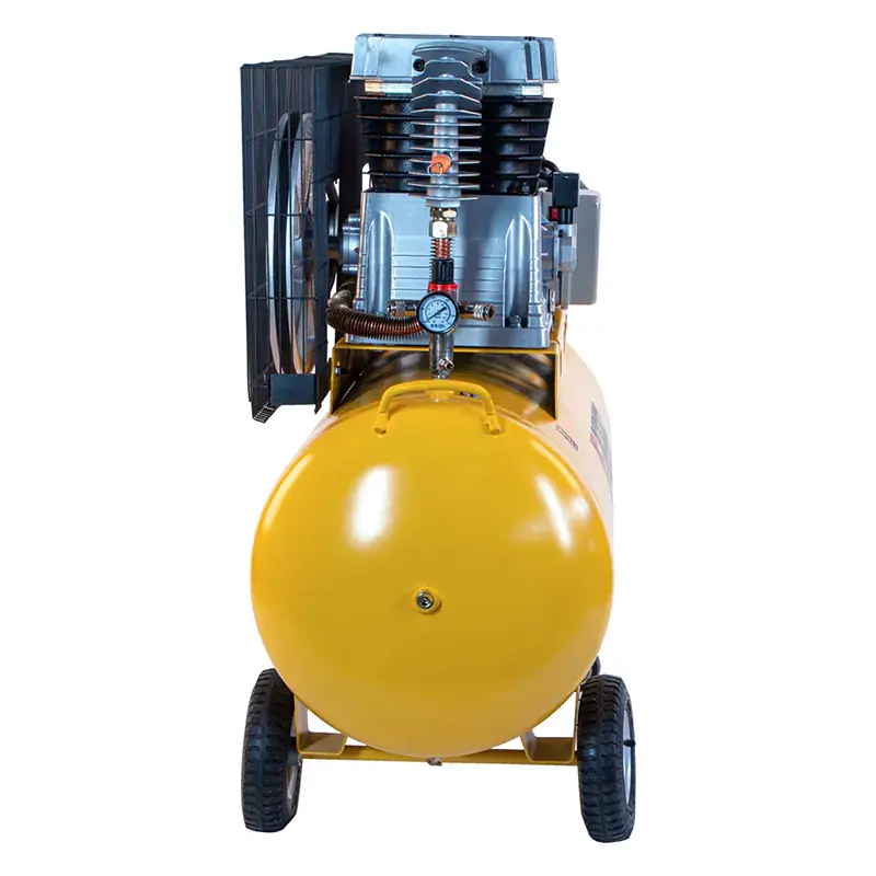 - Компрессор можно свободно перемещать по площадке благодаря наличию ручки и колес.