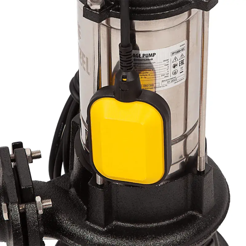 Фекальный насос Denzel FP1800-KS мощностью 1800 Вт предназначен для перекачки грязных бытовых или сточных вод с крупными включениями, которые измельчаются встроенным ножом. Поплавковый выключатель с датчиком уровня жидкости обеспечивает автоматическое включение и выключение. Производительность составляет 26000 л/ч. Насос можно погружать на глубину до 5 м. Корпус выполнен из чугуна и нержавеющей стали. Устройство работает от однофазной сети 230 В.