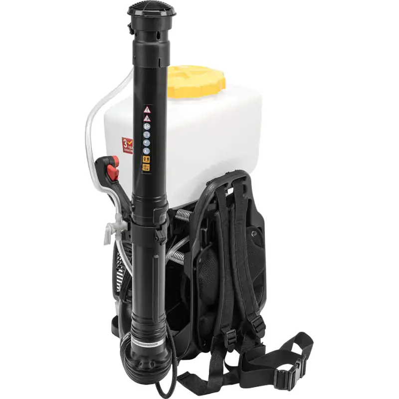 Бензиновый опрыскиватель Denzel gs-63-pro 65302 с двигателем объемом 63 см3 и баком на 25 л предназначен для распыления жидких, порошковых и гранулированных веществ. Используется для ухода за растениями: обработки от насекомых и вредителей, внесения подкормки, профилактики и лечения заболеваний. Двигатель мощностью 3.6 л.с. обеспечивает дальность распыления до 20 м, поэтому опрыскиватель подходит для обработки участков большой площади. Также он может работать в режиме воздуходувки, позволяя убирать с дорожек опавшую листву и свежевыпавший снег.