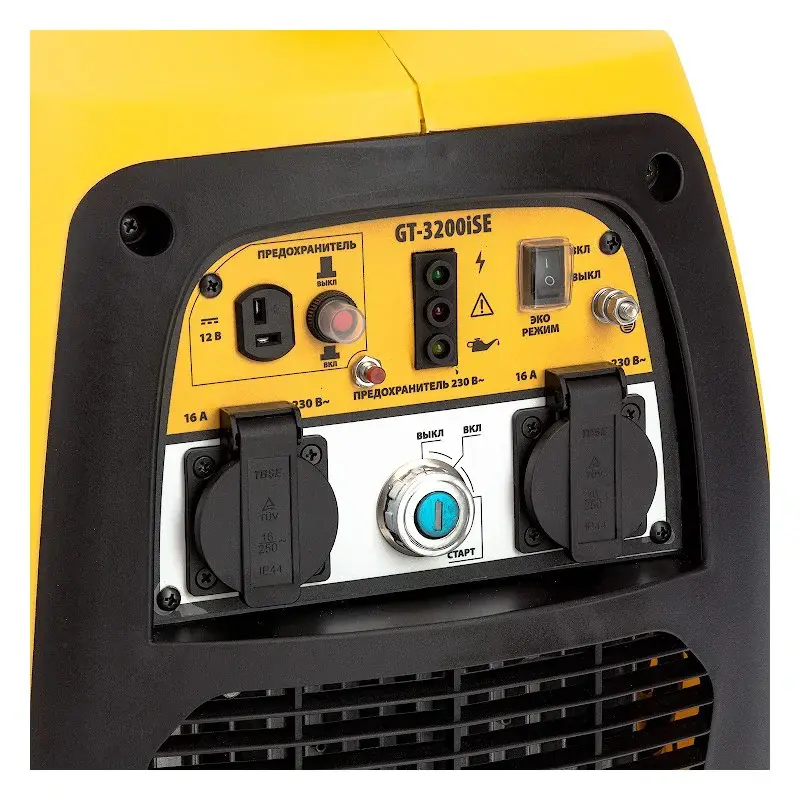 Инверторный генератор Denzel GT-3200iSE позволяет питать подключенное оборудование суммарной мощностью до 3 кВт. Модель оснащена колесами и выдвижной ручкой для простого перемещения по рабочей площадке.
